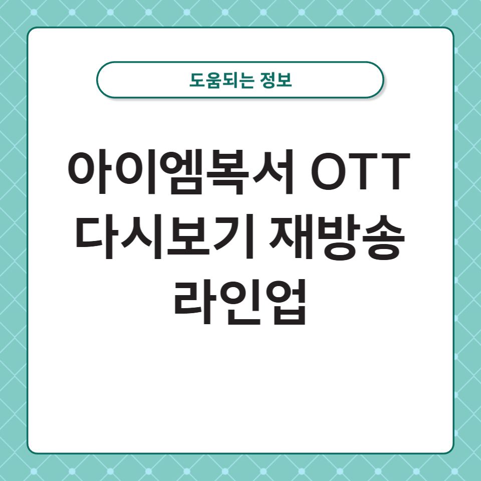 OTT(Over-The-Top) 플랫폼은 인터넷을 통해 콘텐츠를 제공하는 서비스입니다. 아이엠복서도 여러 플랫폼에서 편리하게 다시 볼 수 있습니다.
