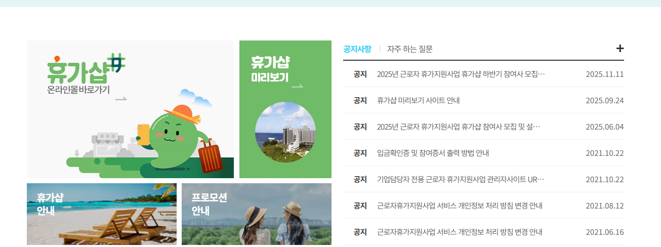 근로자 휴가지원사업의 공식 홈페이지를 방문합니다.