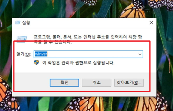 - 'winver' 명령어를 입력하고 Enter를 누르면,