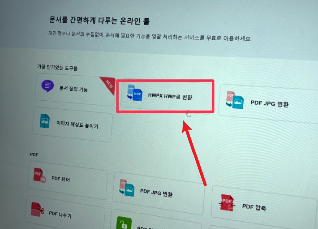 가장 많이 사용되는 방법은 폴라리스오피스를 이용한 온라인 변환입니다.