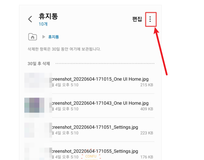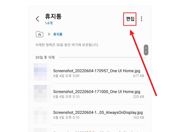핸드폰 휴지통 삭제 파일 복원은 30일 이내의 항목에 한해 가능합니다.