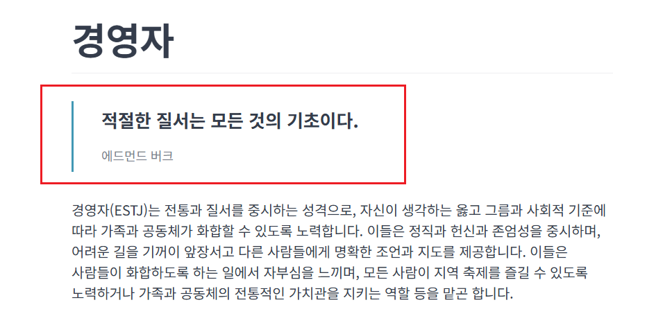 | ESTJ | 경영자 | 리더십 강하고 조직적인 스타일 |