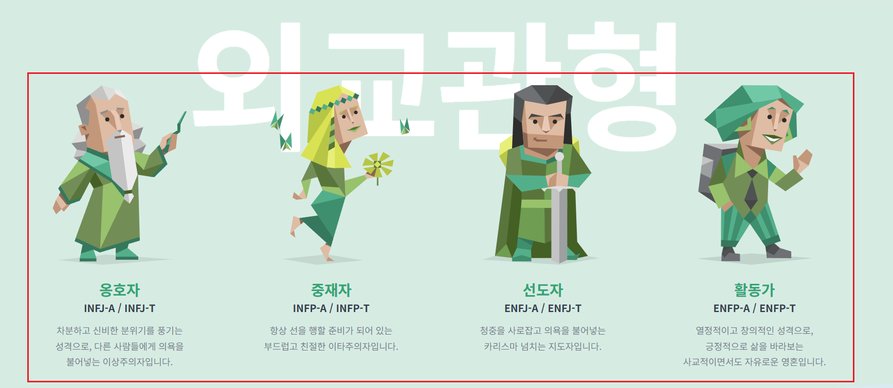| INFJ | 선의의 옹호자 | 이상주의적이며 통찰력이 깊음 |