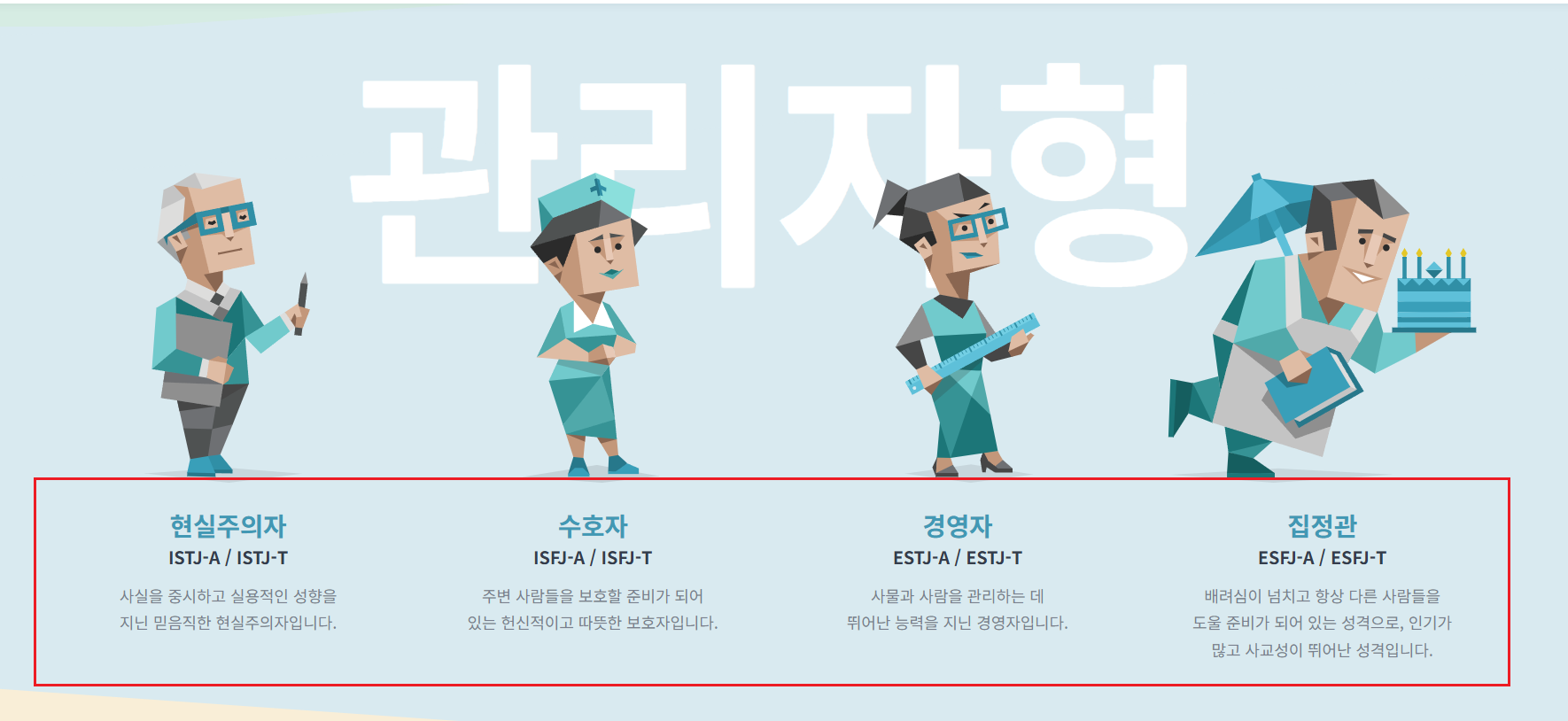 | ISTJ | 현실주의자 | 책임감 강하고, 계획적인 성격 |