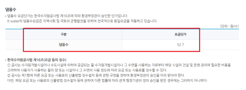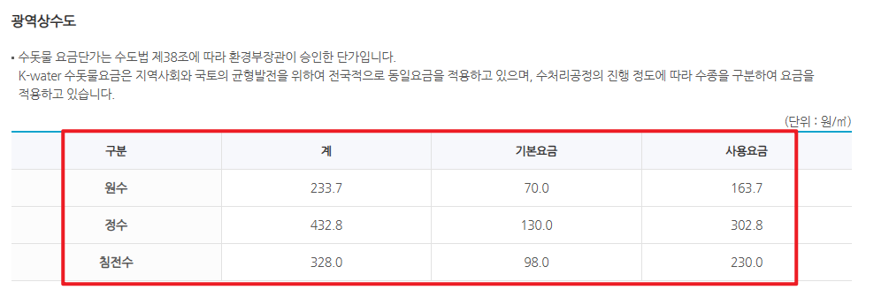 | 상수도요금 | 정수장에서 공급된 깨끗한 물 사용 요금 |
