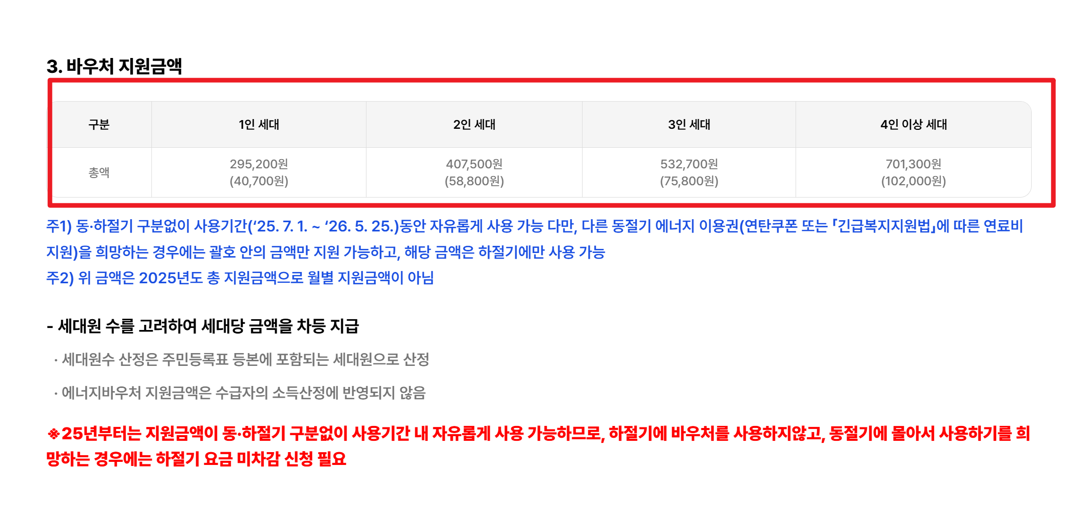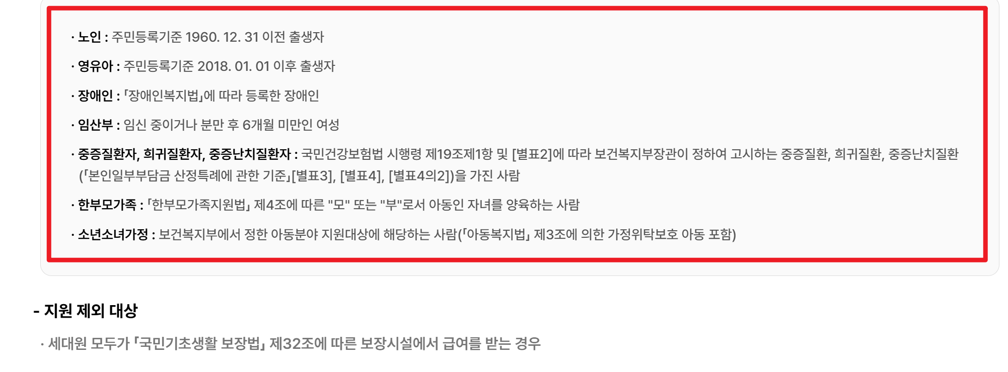 - 영유아(만 7세 이하) 👶 : 어린 자녀를 둔 가정은 냉·난방 사용량이 많아 필수 지원 대상입니다.