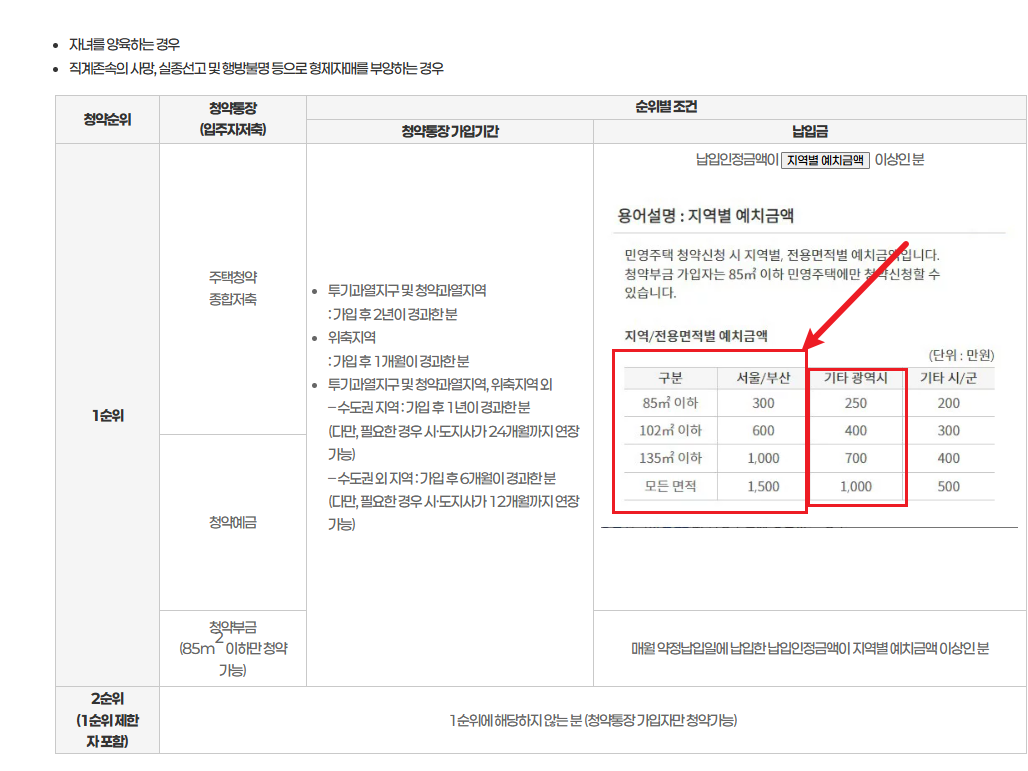 2. 청약통장 예치금 기준, 이게 핵심입니다!