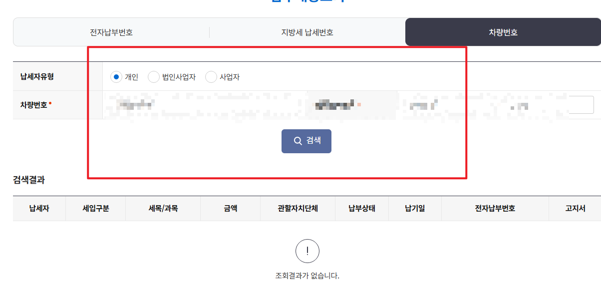 - 차량 번호 또는 주민등록번호 입력